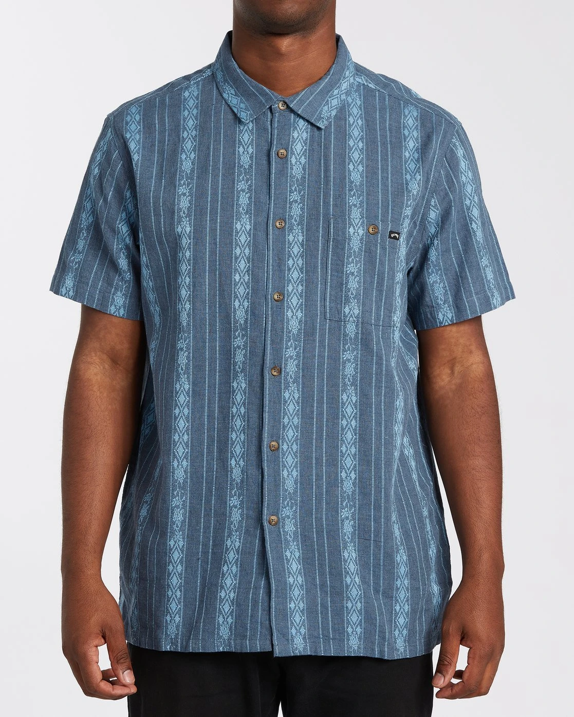Get into a Sunday state of mind with this casual, custom button down. The moveable, printed short sleeve shirt features an allover jacquard pattern and flag label at the chest pocket. Features: : Mens’ short sleeve shirt. Button down. Chest pocket. Collar. Yarn dye jacquard pattern.60% Cotton, 40% Polyester Style: M5023bsj / Mens Woven Sundays Jacquard in Navy Blue ( Nvy) / Small / Cotton/ Polyester / Billabong