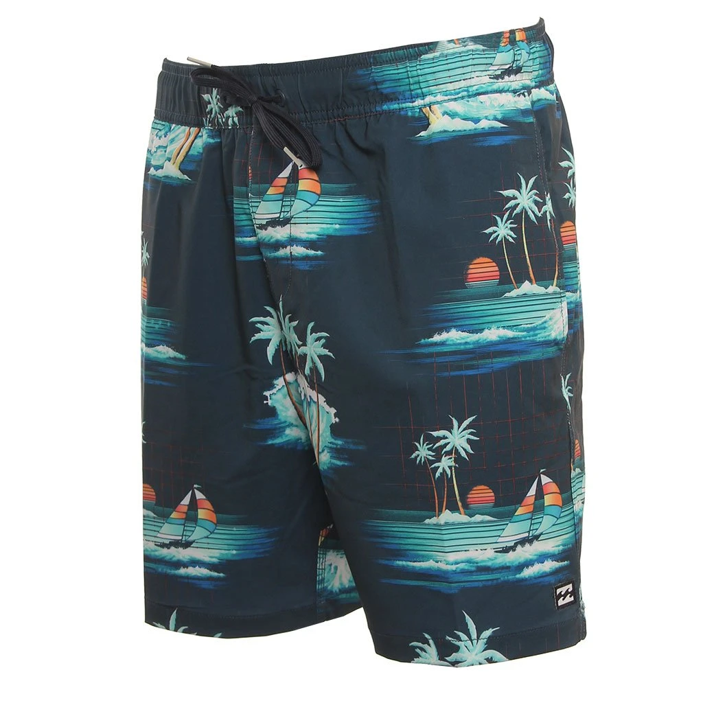 Printed elastic waist boardshorts.4- Way Recycled Stretch Fabric: A high performance fabric made from recycled Pet plastic bottles. The perfect combination of performance and comfort. Micro Repel water repellent coating keeps fabric light and quick drying. Woven logos at back pocket and left leg. Back pocket with hook and loop flap closure. Lasso waist: full-waist drawcord for a precise fit. On seam hand pockets. Short Length: 17 inch outseam. Material: Recycler 4- Way Stretch.90% Polyester 10% Elastane / Mens Boardshorts Sundays Layback in Blue / Large / Elastane/ Polyester / Billabong