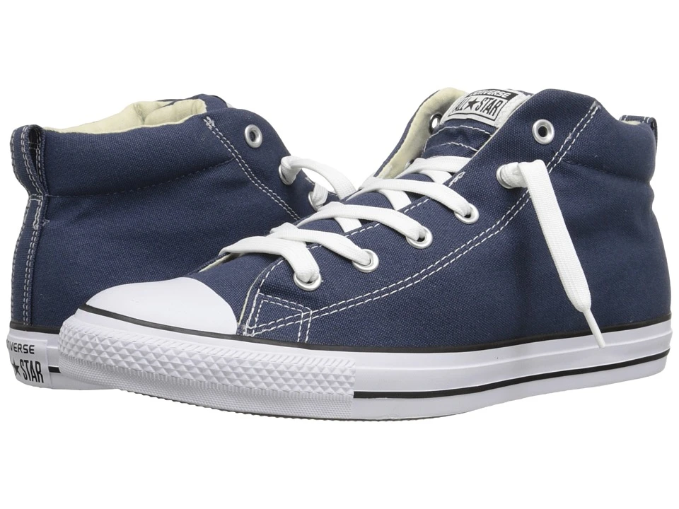 Good times are calling with the Converse Chuck Taylor All Star Street Core Canvas Mid sneaker. Durable all canvas upper. Mid-top silhouette offers excellent ankle protection with a padded collar and tongue. Lace-up closure with metal eyelets for a snug and durable fit. Canvas lining and a padded footbed for all-day comfort. Signature Chuck Taylor All Star rubber toe, textured toe bumper, contrast midsole stripe, medial side air port holes and logo patach, and Converse All Star heel patch. Rubber outsole with custom Diamond tread pattern for traction. Imported. Measurements: ; Weight: 14 oz ; Product measurements were taken using size Men’s 11. 5, width Medium. Please note that measurements may vary by size.