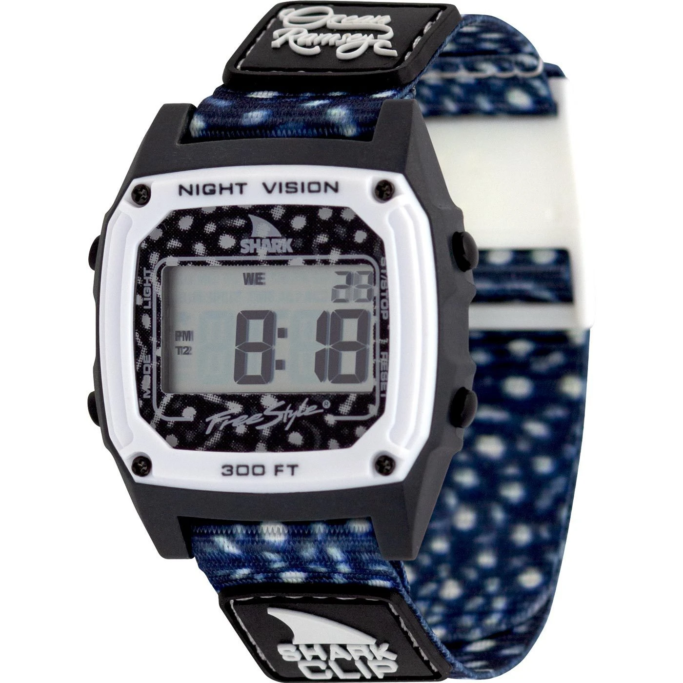 We are proud to be partnering with world-renowned marine biologist and shark conservationist Ocean Ramsey and her team to raise awareness of conservation efforts for sharks around the world. With the release of these two limited edition Ocean Ramsey X Freestyle Shark watches, we’ll work together to promote awareness of the need for conservation of these wonderful creatures. Freestyle will also make a $15,000 contribution to One Ocean Research, partially funded by a portion of the proceeds from the sale of these amazing Ocean Ramsey Signature Collection watches, to help fund further conservation efforts by Ocean and her team. For more information on One Ocean Research and other related efforts supported by Ocean Ramsey and her team, see Ocean Ramsey.com/ About Now is your chance to become a part of the team and help raise awareness of the need for shark preservation, while also helping fund the efforts of Ocean and her team as they continue to work tirelessly to save our Sharks! The Shark Clip features the original clip band system that ignited the Freestyle brand. Much like a seatbelt, just clip in to keep your watch safe, snug and comfortable. Like all Shark Watches, the Shark Clip is backed by our limited lifetime warranty. Fs101054 / Watch Shark Clip Ocean Ramsey Signature Whale Sharks in Multi / Freestyle
