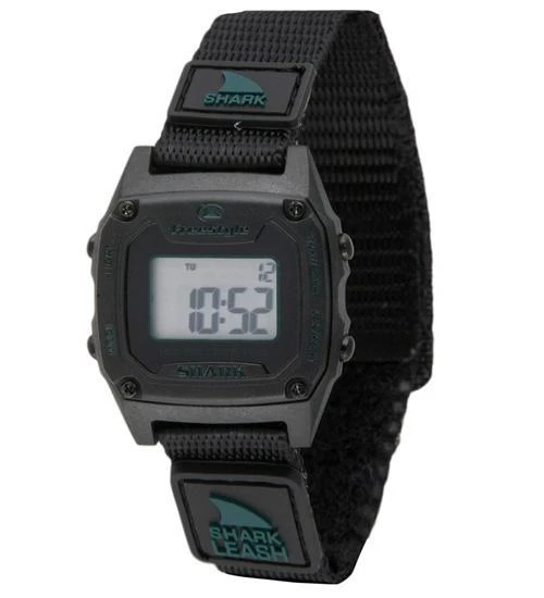 The mini-me version of the original Shark Leash, the Shark Leash Mini measures in with a 30mm case width best for fitting smaller wrists. The Shark Leash Mini is action-ready with features including alarm, dual time, countdown timer, stopwatch, and night vision backlight. Like all Freestyle Watches, the Shark Leash Mini is backed by our limited lifetime warranty and water resistant to 100 meters. S T Y L E#: Free10022928 / Watch Shark Leash Mini Black / Freestyle