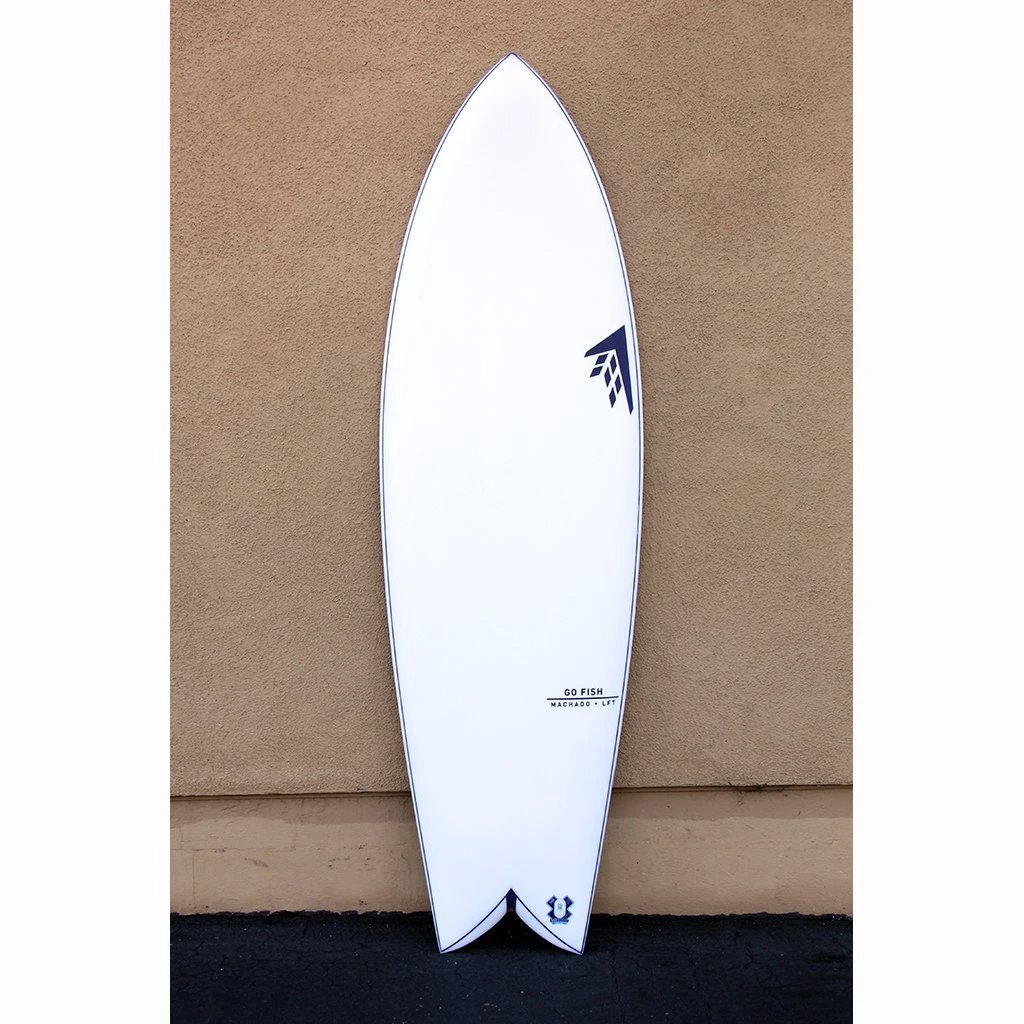 Rob States: ” This board just makes me want to surf… no matter what the waves are like. It flies in small to weak waves, and if its overhead and pumping it draws unique lines, allowing me to approach waves differently and explore new lines”. At first glance the outline pays homage to the old school fish but on closer inspection you’ll notice some subtle changes. I’ve narrowed up the swallow tip to tip to give the board more maneuverability and the narrower nose gives it a more speedier outline. The rocker is fairly relaxed with a low entry rocker upfront combined with a subtle tail rocker, giving this board quick ‘up and go’ and maximizes its top-end speed. The bottom contours are best described as ‘ B O A R D Eat B O A R D’ and were inspired by a George Greenough design I rode a few years ago. I’ve refined it over the years and it now features a really flat bottom concave that runs down the center all the way through the tail. The two side panels run down each rail on either side of the center panel, and transition from concave to flat to Vee while maintaining the deep single concave down the middle. The overall effect of these design parameters, when combined with a keel fin set up, is a highly maneuverable and speedy board with tons of drive and takes the retro fish to a whole new performance level Available T E C H: Lft ( Linear Flex Technology) White Deckskin – Lft incorporates Firewire’s Springer H D, a 0.75″ (18 mm) wide aerospace composite that runs down the centerline of the board, representing the next generation in our Springer technology. The Springer Hd runs the entire length of the board and plays a pivotal role in optimizing flex from nose to tail / Surfboards Machado Go Fish 5’9″ / Firewire