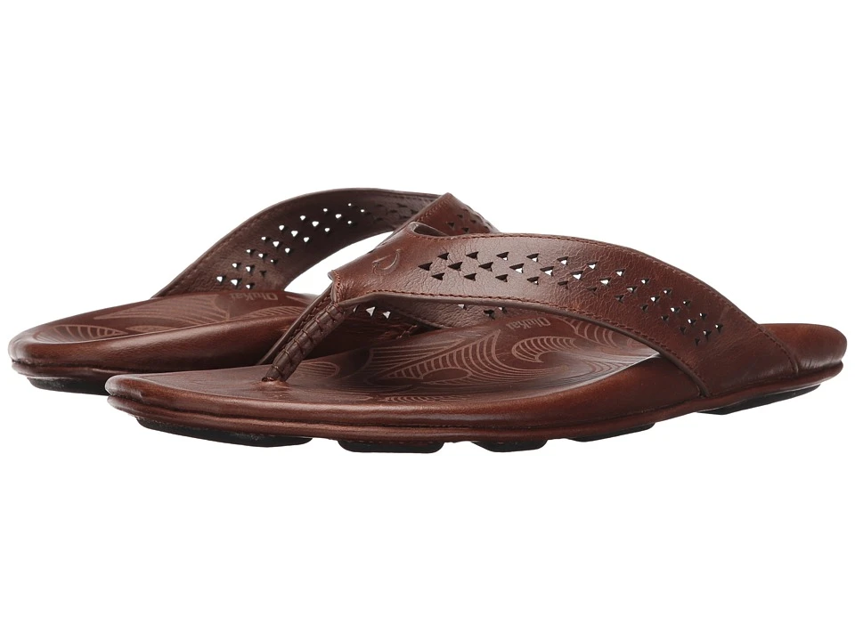 Show off the island way of life with the superior style and comfort of the OluKai Kohana sandal! ; Rich full grain leather upper with laser perforations. Outboard Strap Construction offers a free yet secure fit for the most comfortable arch support possible. Original laser footbed decorative detail. Compression-molded EVA midsole wrapped in full grain leather. Anatomically correct contour for a personalized fit and sustained comfort over time. Full grain, leather wrapped outsole. Features non-marking molded rubber traction pods. Imported.