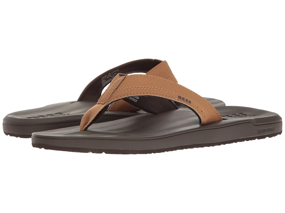 Uncomfortable flip-flops are a thing of the past with the lightweight and cushy Reef Contoured Cushion sandal! ; Synthetic nubuck upper. Padded jersey lining. Super soft molded polyurethane footbed. Anatomical arch support. Molded rubber outsole for durable wear. Imported. Measurements: ; Weight: 8 oz ; Product measurements were taken using size 12, width D – Medium. Please note that measurements may vary by size.
