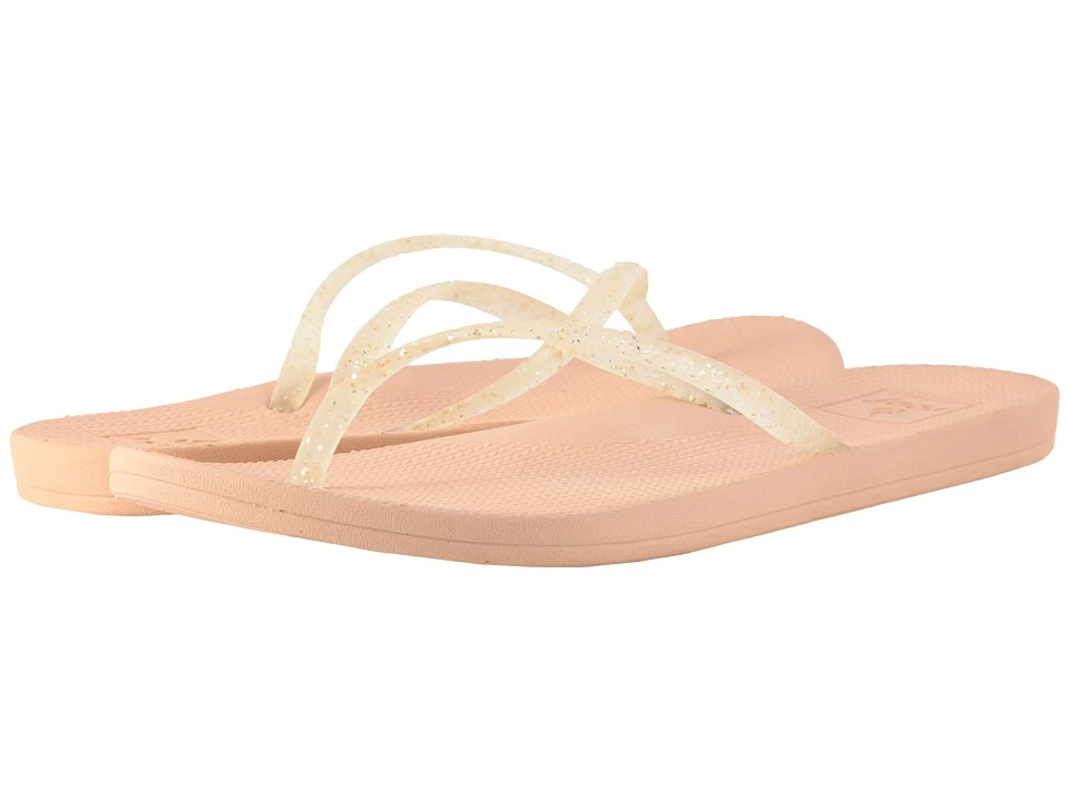 Escape is a state of spirit not a state of mind. Embrace the journey with the revolutionary comfort of the Reef Escape Lux Shimmer sandal! Superior strap strength for long-lasting wear. Earth-friendly PVC free strap with shimmer detailing. Oval toe post offers ultimate comfort between the toes. Exclusive cushion rubber for all-day comfort. Enhanced anatomical arch support for stability and support. Contoured footbed molds to your foot for a feminine silhouette. Custom print adorns footbed. Rubber outsole offers grippy performance and durability. 100% PVC-free material. Imported. Measurements: Weight: 3 oz Product measurements were taken using size 7 width B – Medium. Please note that measurements may vary by size. Weight of footwear is based on a single item not a pair.