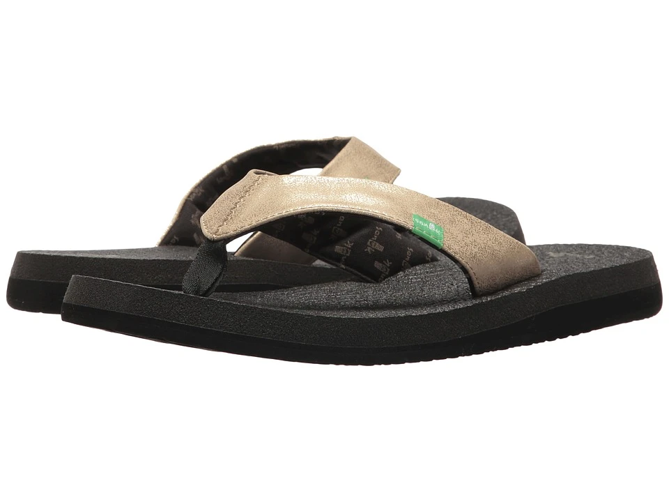 You may find your inner chi when wearing the bliss-inducing comfort of the Yoga Glam from San¼k. Metallic synthetic leather strap. Printed jersey liner adds a colorful contrast. Leather-covered nylon toe post for added comfort. Super soft and cushy footbed made out of real yoga mat materials. Durable man-made outsole with repeating Happy-U logo tread. Made with vegan- and vegetarian-friendly materials. Measurements: Heel Height: 1 in Weight: 5 oz Product measurements were taken using size 8 width B – Medium. Please note that measurements may vary by size. Weight of footwear is based on a single item not a pair.