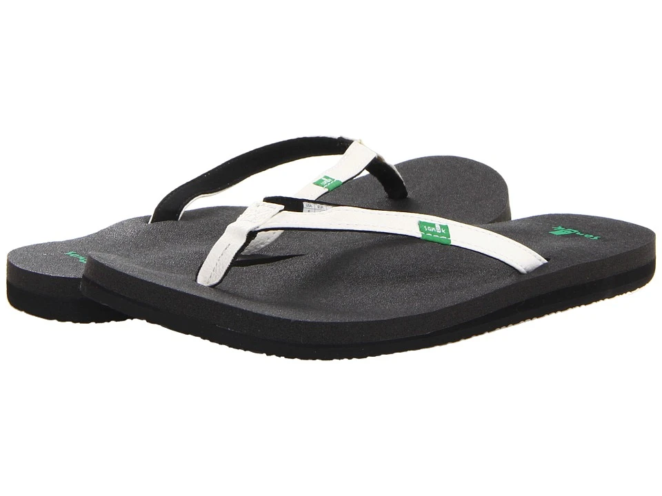 Find your happy place with the Yoga Joy flip-flops from Sanuk. Synthetic strap with soft jersey lining. Synthetic covered nylon webbing toe post for comfort. Thin profile. Footbed made from real yoga mat provides all day comfort. Added arch cookie for support. Sponge rubber outsole with repeating Happy U logo tread. Vegan and vegetarian friendly. Sanuk logo on strap and footbed. Imported. Measurements: ; Heel Height: 3 4 in ; Weight: 4 oz ; Product measurements were taken using size 8, width B – Medium. Please note that measurements may vary by size.