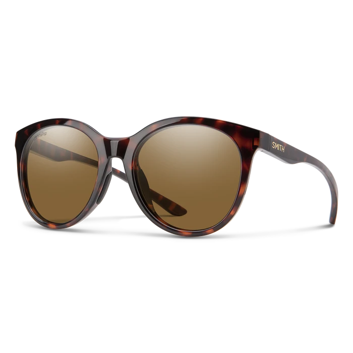 You can’t go wrong with the round shape of the Bayside. Strikingly simple, these Smith sunglasses complement most face shapes. The lightweight frames stay in place thanks to no-slip nose pads. They come with color-enhancing Chroma Pop™ polarized lenses. You can also opt for standard Carbonic, with or without polarization. Product Detail s Vision Chroma Pop™ polarized lenses cut glare and enhance color and contrast Carbonic polarized lenses cut glare and offer impact resistance Carbonic lenses offer impact resistance and clear optics Fit / Integration Medium fit, large coverage4-base lens curvature is just right for everyday wear Megol nose pads provide non-slip grip so glasses stay put Frame Evolve™ bio-based frame material is lightweight and durable / Sunglasses Bayside in Brown / Smith
