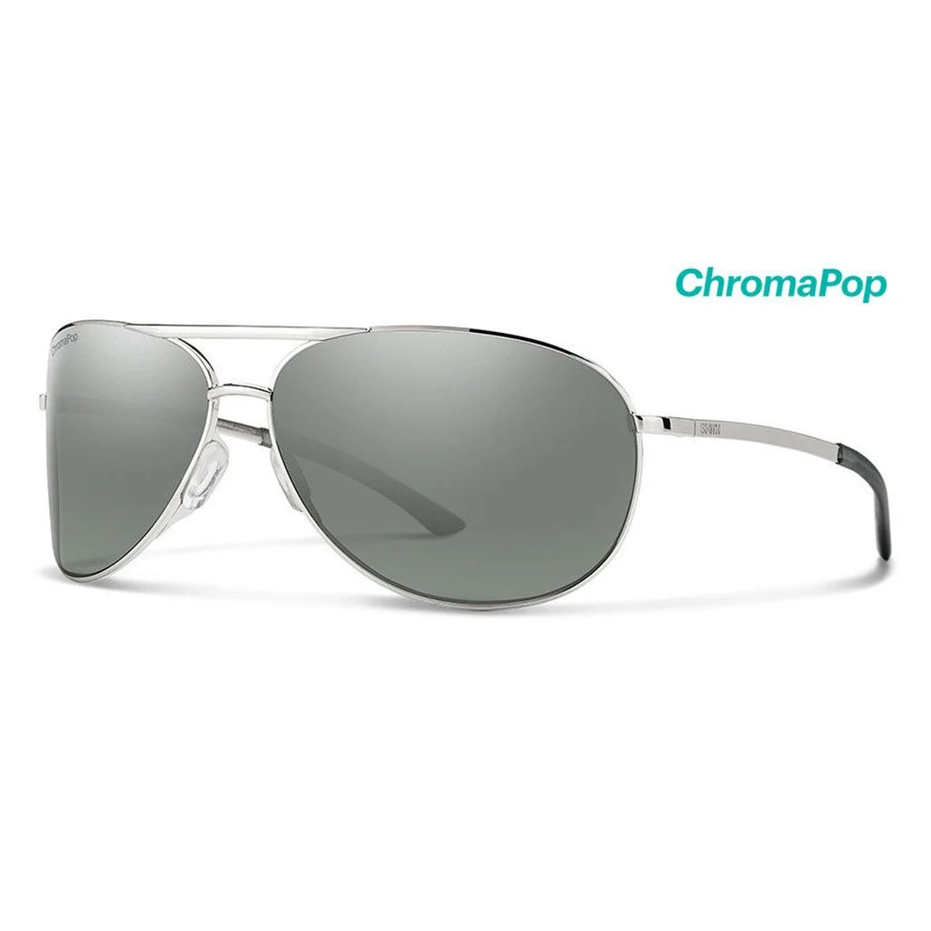 Smiths unique take on the classic aviator gets an upgrade. Now available with Chroma Pop™ in their signature 9×3 toric lenses, with improved temple design, and Tailor fit adjustable nose pads. / Sunglasses Serpico 2 in Silver / Smith