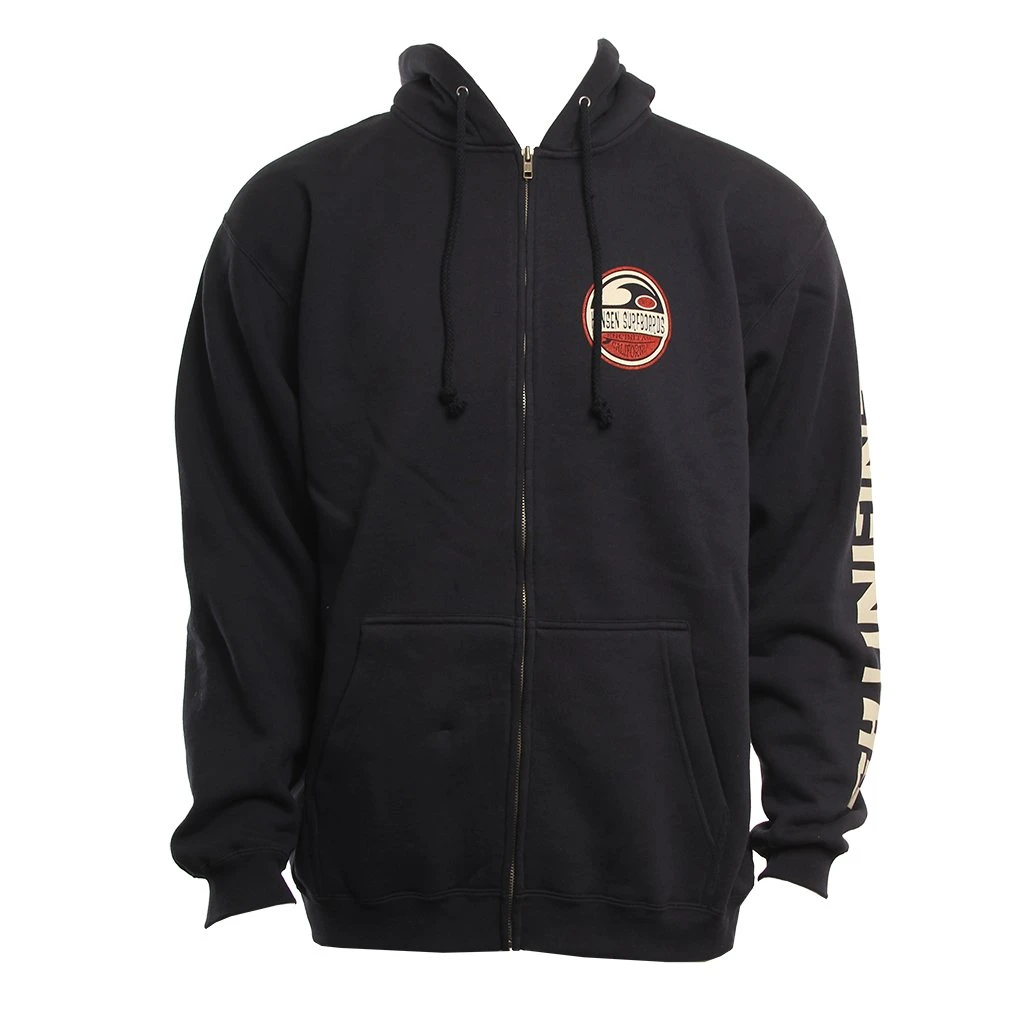 Mens zip up hoodie Screenprinted graphic on chest and back ” Encinitas” screenprint down left sleeve80% cotton 20% polyester / Mens Sweatshirt Split Circle Fz Hood in Navy Blue / Medium / Cotton/ Polyester / Hansen