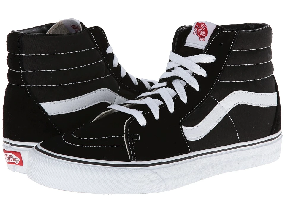 Roll out with this time-tested Vans SK8-Hi. Uppers of suede/canvas or canvas. Perfed upper. Cotton drill lining. Collar padding. Triple stitching on collar. Die-cut EVA insert. Vulcanized sole attachment. Gum rubber outsole with waffle tread pattern. Measurements: ; Shaft: 4 1 2 in ; Product measurements were taken using size Men’s 9, Women’s 10. 5, width Medium. Please note that measurements may vary by size.