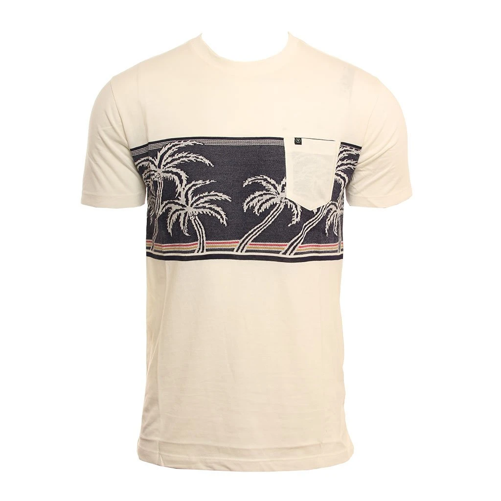 30 singles short sleeve crew. Features: jacquard art and chest pocket. Garment wash with enzyme + silicon. M A D E From 60% Cotton / 40% Polyester / Mens Knit Las Palmas in White / Small / Cotton/ Polyester / Vissla