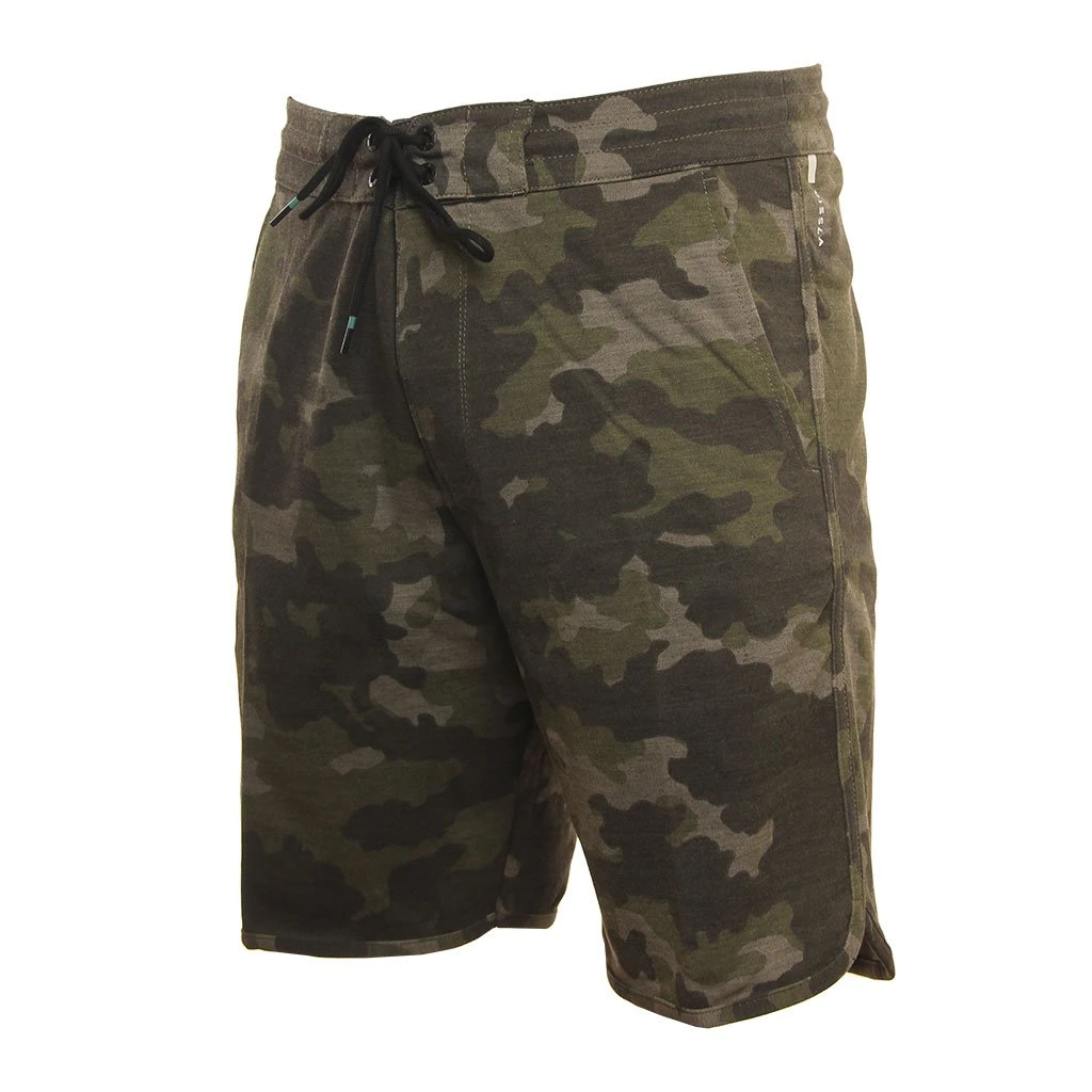 Performance weight wicking upcycled poly Repreve/rayon interlock. Style features zipper closure back pocket side slash pockets scalloped bound hem high density printed logos and tethered waistband closure.65% Recycled Polyester 30% Rayon 5% Spandex / Mens Shorts Sofa Surfer Locker Eco in Camo ( Cam) / Small / Polyester/ Spandex / Vissla